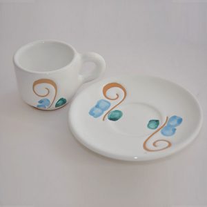 Tazzina da caffè con piattino con ricciolo azzurro verde