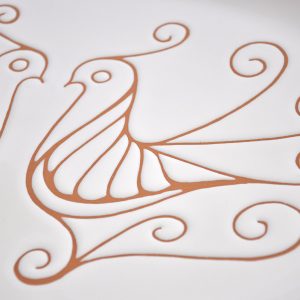 - La terza fase consiste nel togliere il pezzo dal forno che si sarà trasformato da semplice argilla in “biscotto” con una colorazione rossiccia. A questo punto il pezzo viene smaltato di bianco e lasciato asciugare per poi poter essere inciso e colorato.