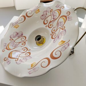 - La quinta e ultima fase è quella più importante. Il pezzo viene cotto per la seconda volta ad una temperatura di 920° dove lo smalto fondendosi, si vetrifica, esaltando l’opera con luminosità e lucentezza.