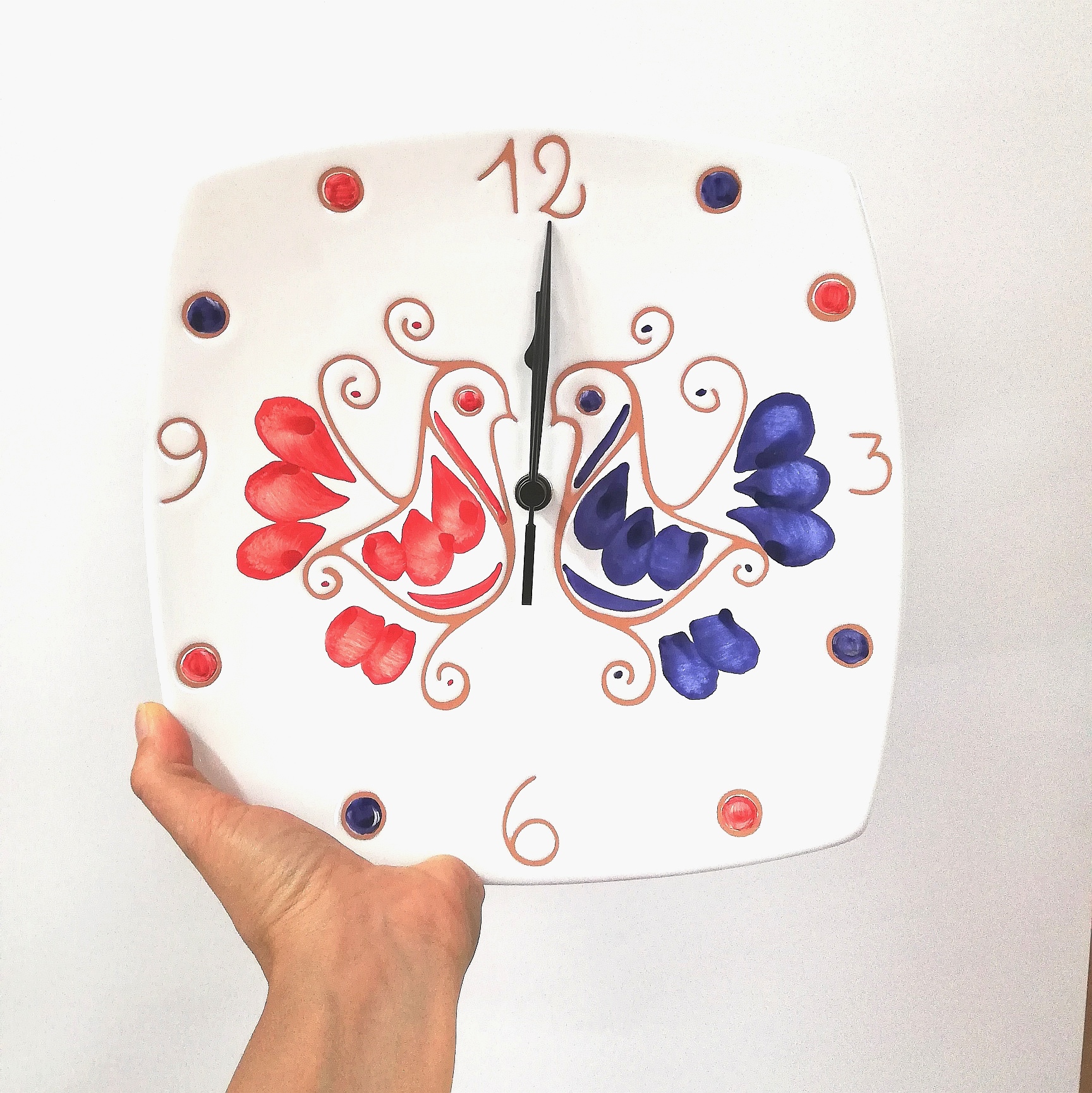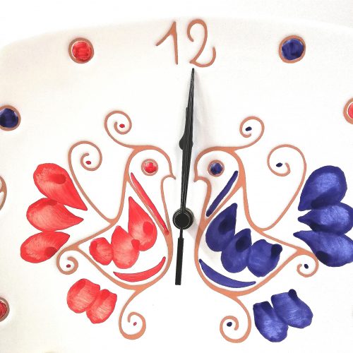 - La terza fase consiste nel togliere il pezzo dal forno che si sarà trasformato da semplice argilla in “biscotto” con una colorazione rossiccia. A questo punto il pezzo viene smaltato di bianco e lasciato asciugare per poi poter essere inciso e colorato.