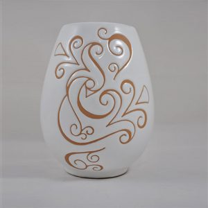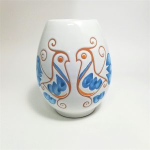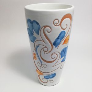 - La quinta e ultima fase è quella più importante. Il pezzo viene cotto per la seconda volta ad una temperatura di 920° dove lo smalto fondendosi, si vetrifica, esaltando l’opera con luminosità e lucentezza.