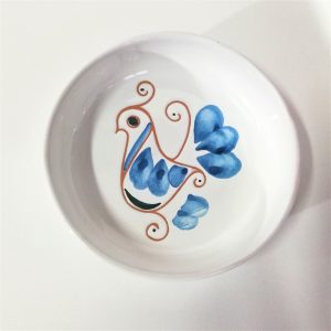 - La terza fase consiste nel togliere il pezzo dal forno che si sarà trasformato da semplice argilla in “biscotto” con una colorazione rossiccia. A questo punto il pezzo viene smaltato di bianco e lasciato asciugare per poi poter essere inciso e colorato.